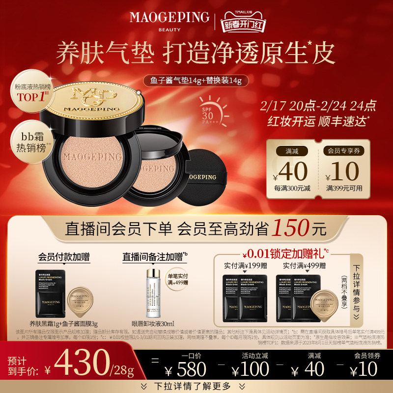 【百亿补贴】毛戈平奢华鱼子酱无瑕气垫粉底液保湿遮瑕持久