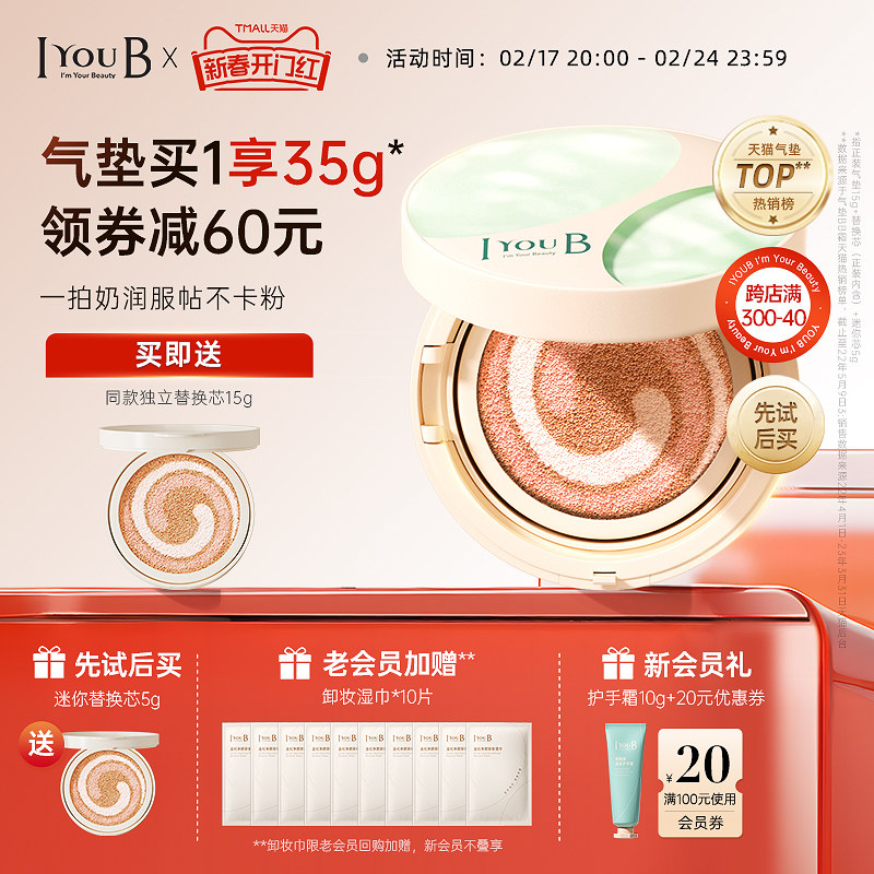 【新春开门红】玛丽黛佳水域亮肤气垫霜1+1遮瑕粉底液女提亮贴妆