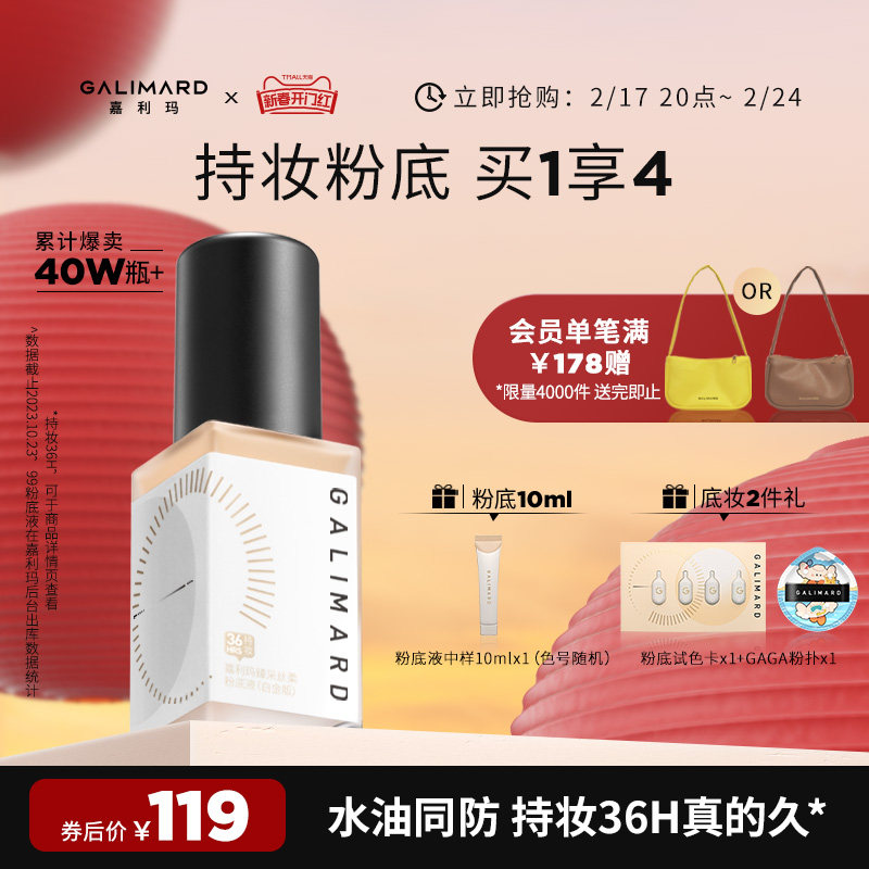 嘉利玛不用P粉底液轻薄奶油肌遮瑕持久不脱妆混干持妆保湿油皮