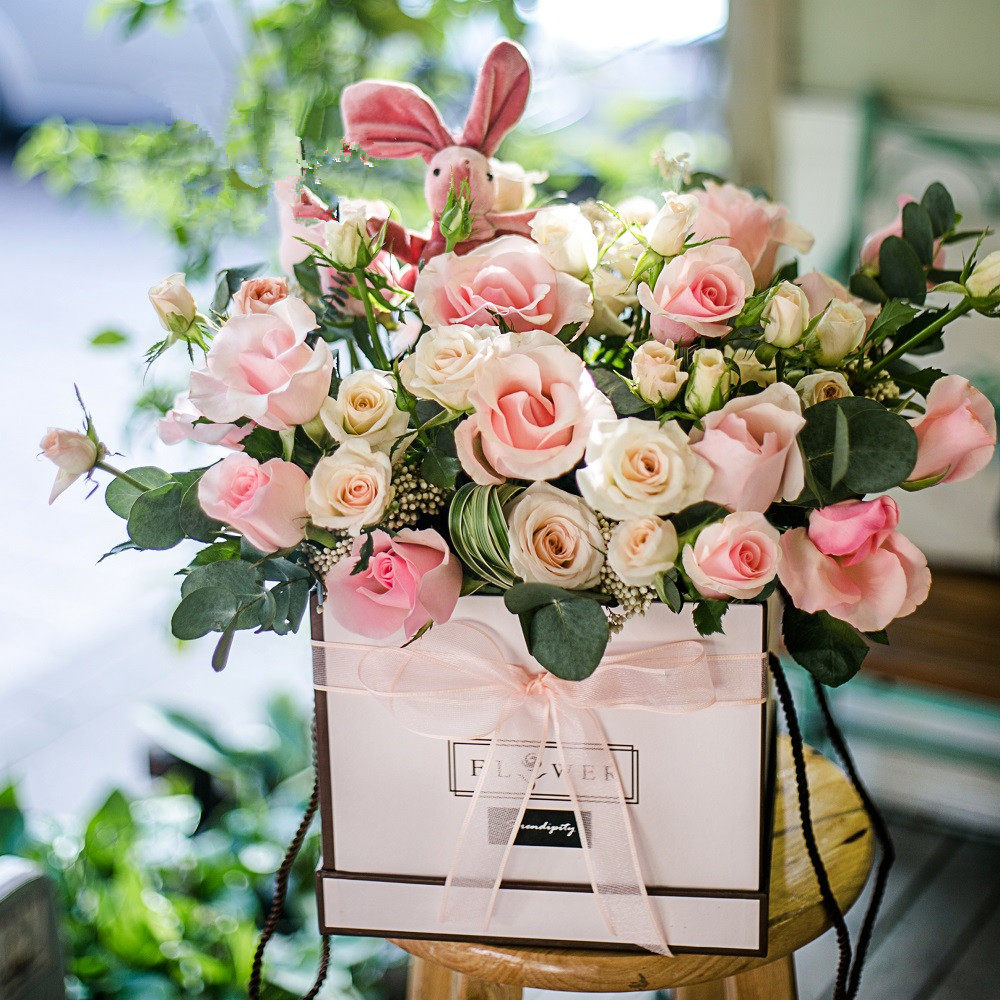 香槟红粉白玫瑰礼盒花束上海鲜花速递同城女朋友生日鲜花店当天送