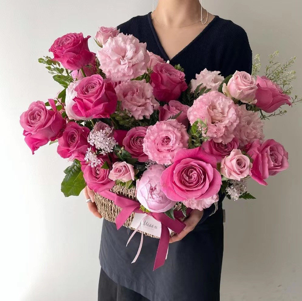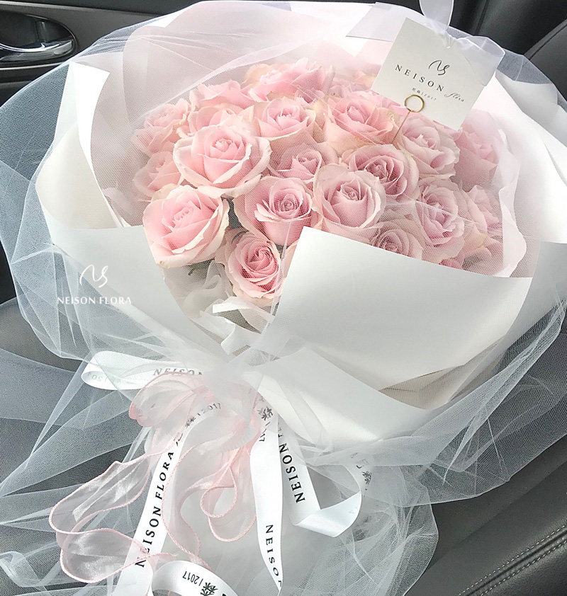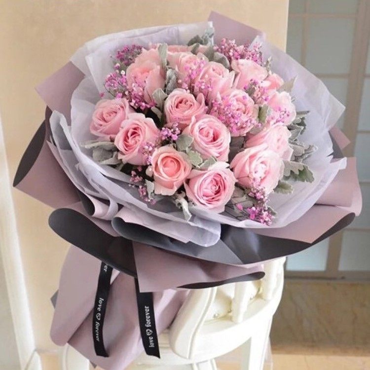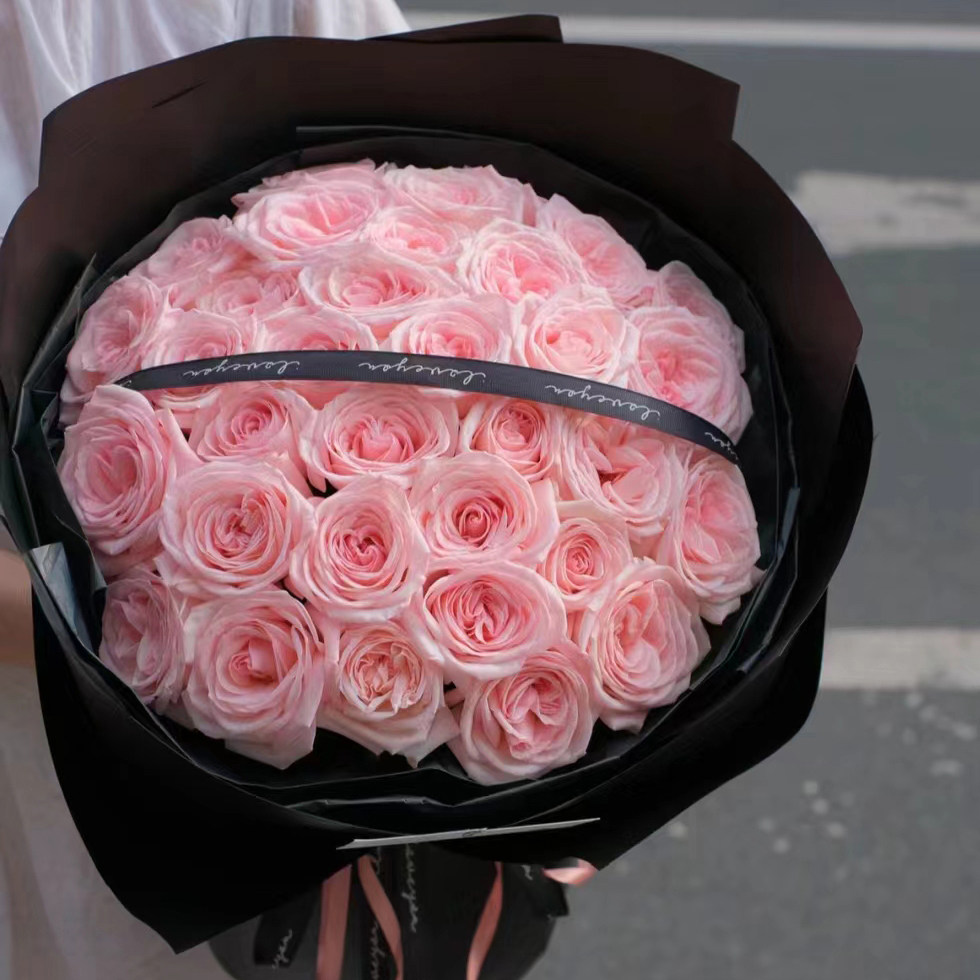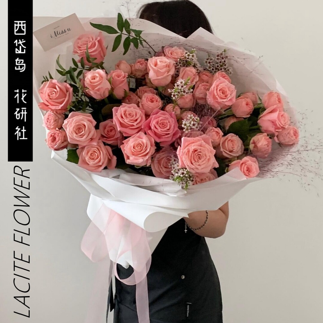 西岱岛|北京同城鲜花速递玫粉大花头玫瑰生日花束小品种长相思