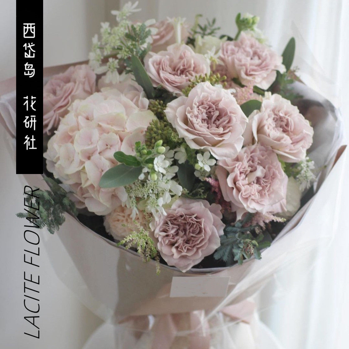 西岱岛北京同城鲜花速递新款复古色灰粉玫瑰混搭生日花束 貂蝉