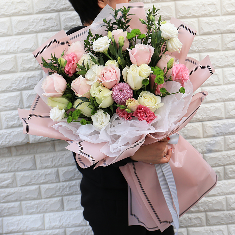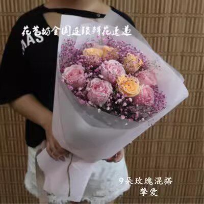 情人节混搭粉玫瑰花束生日花店北京鲜花速递同城鲜花闪配送花上门