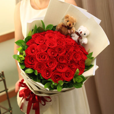 情人节33朵红粉白香槟玫瑰花束礼盒上海鲜花速递同城花店闪送配送