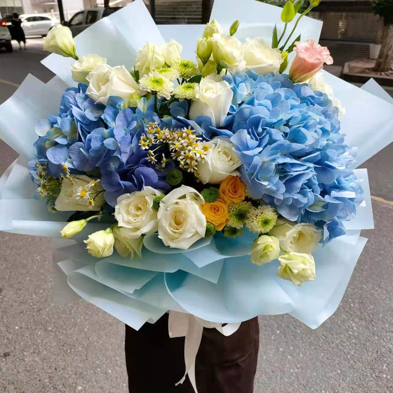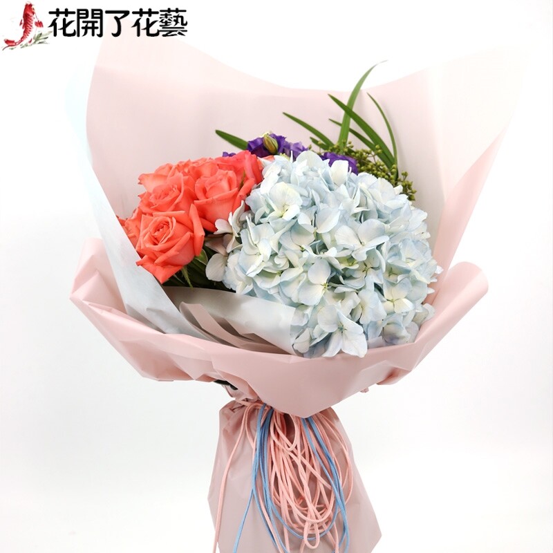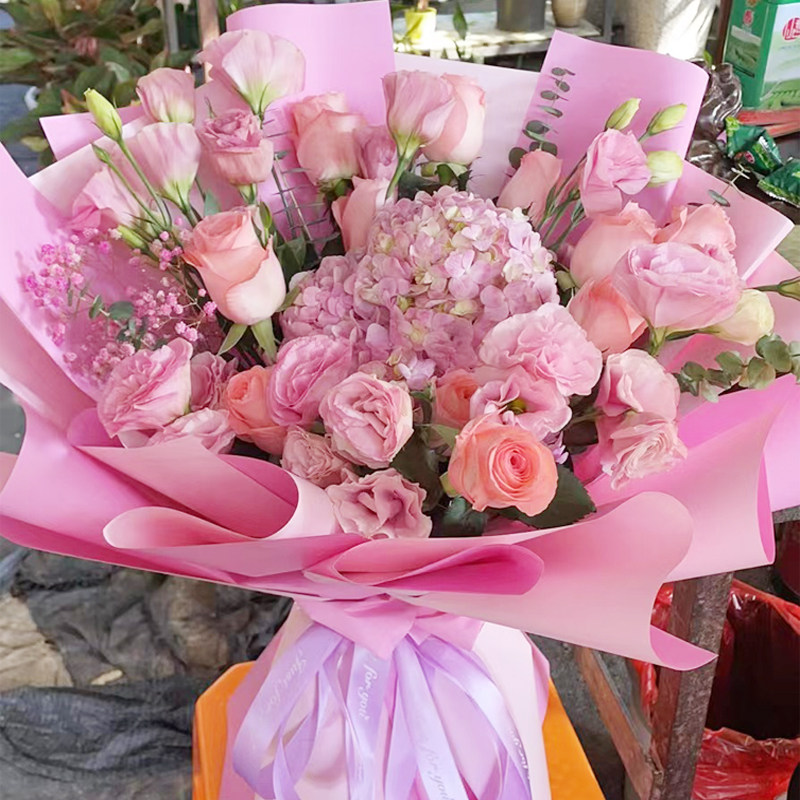 情人节混搭粉玫瑰花束花店绣球郁金香北京鲜花速递同城生日配送花