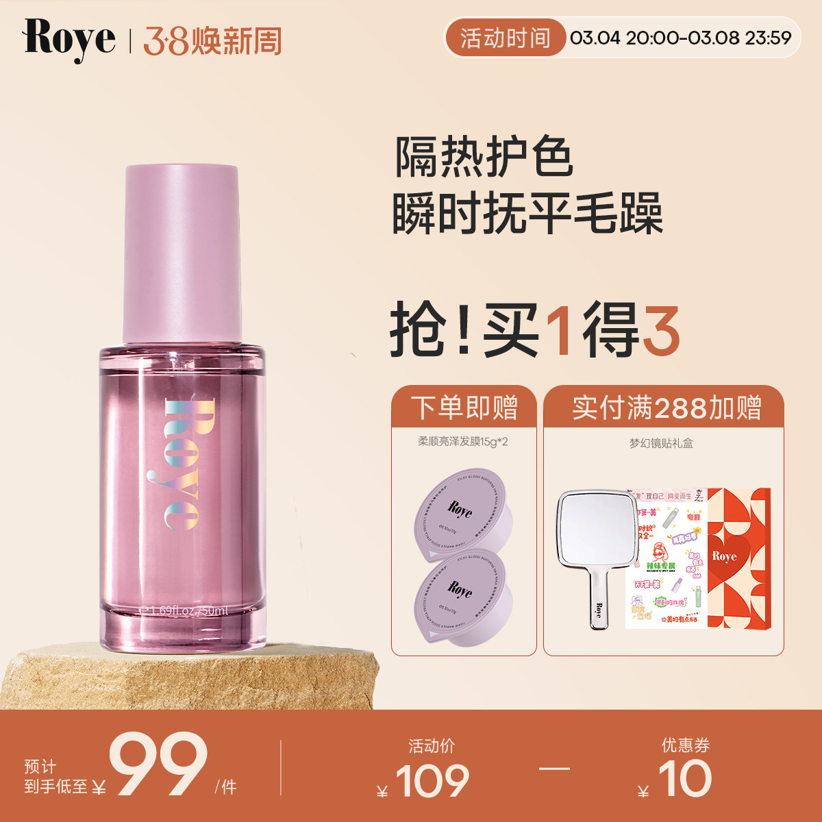 Roye若也臻萃亮泽护发精油柔顺紫光瓶防毛躁改善烫染受损干枯发质