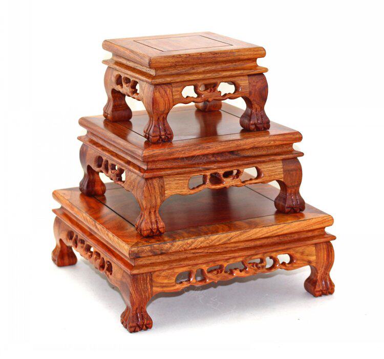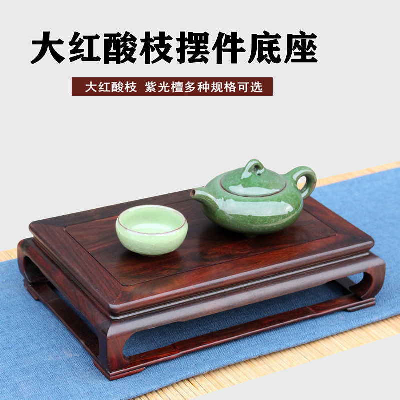 实木大红酸枝茶壶奇石头花盆花瓶佛像摆件底座红木中式工艺品托架