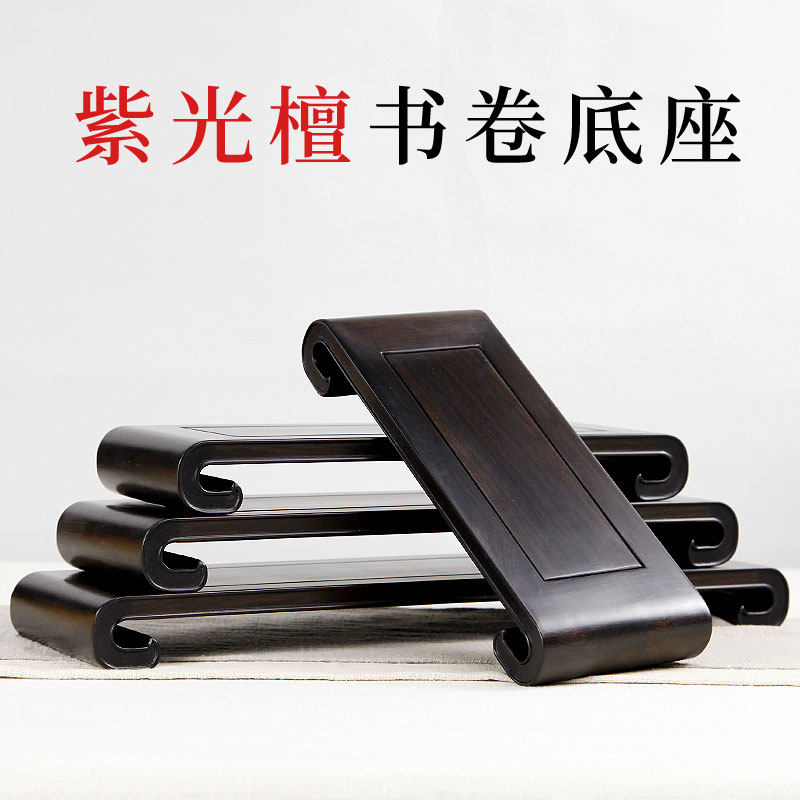 紫光檀书卷底座红木雕刻工艺品摆件实木托架长方形花盆瓶佛像木座