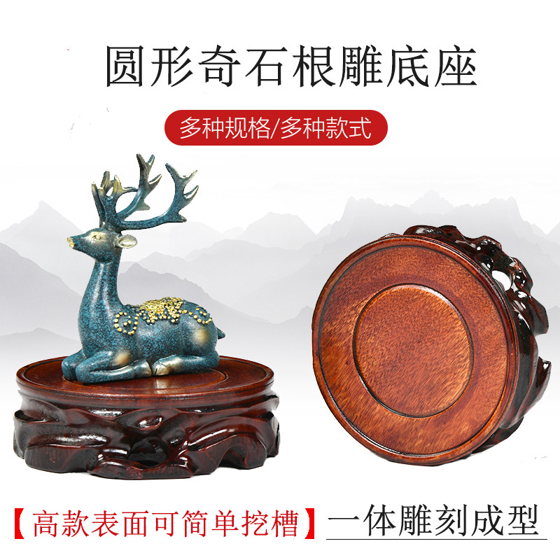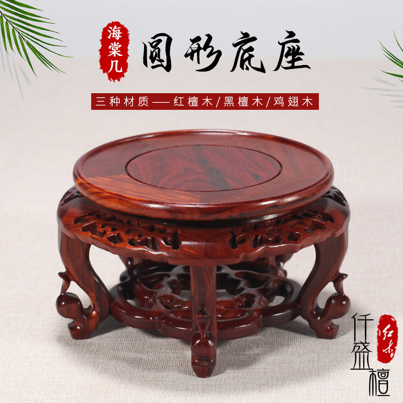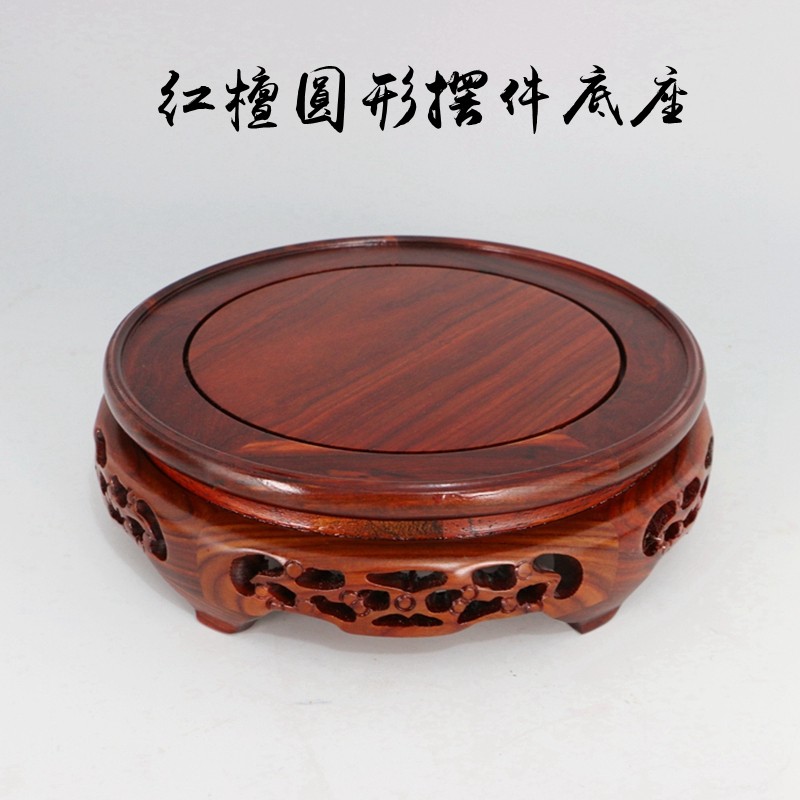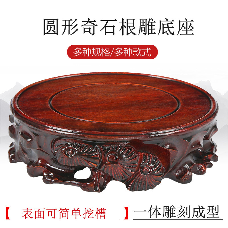 实木圆形底座花瓶底座雕刻工艺品摆件茶壶鱼缸奇石头红木底座托架