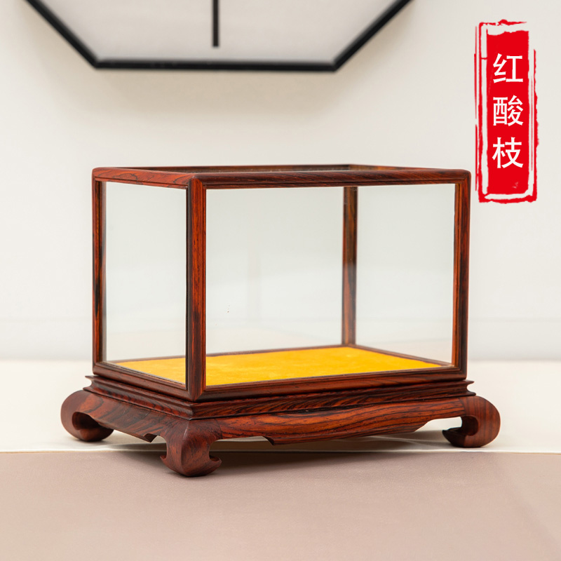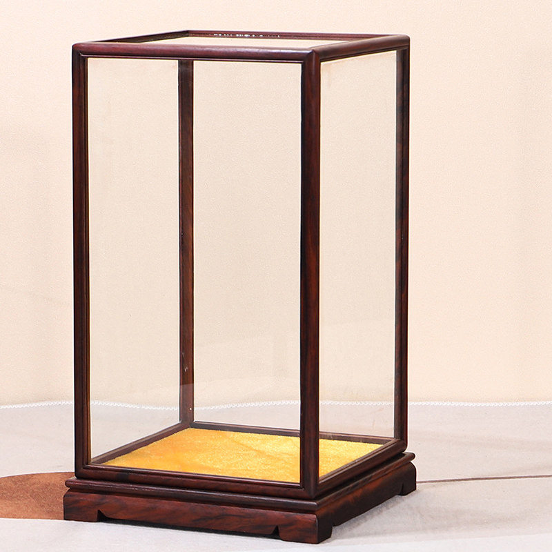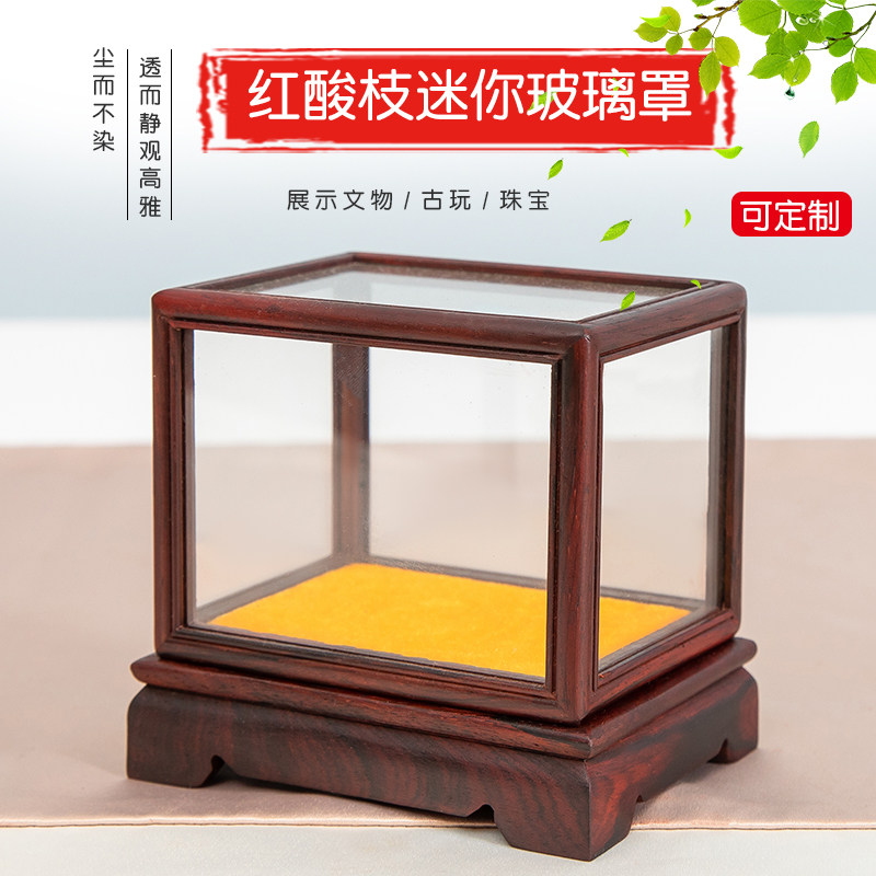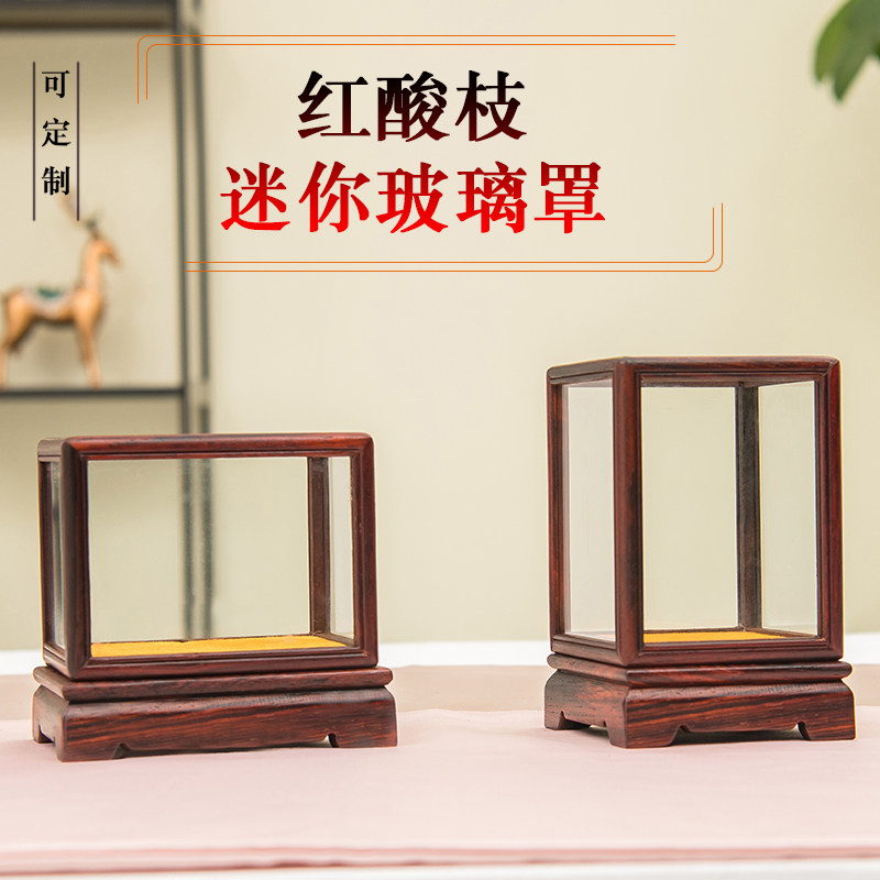 红木工艺品红酸枝奇石古董文玩佛像摆件玻璃罩防尘罩子透明展示盒