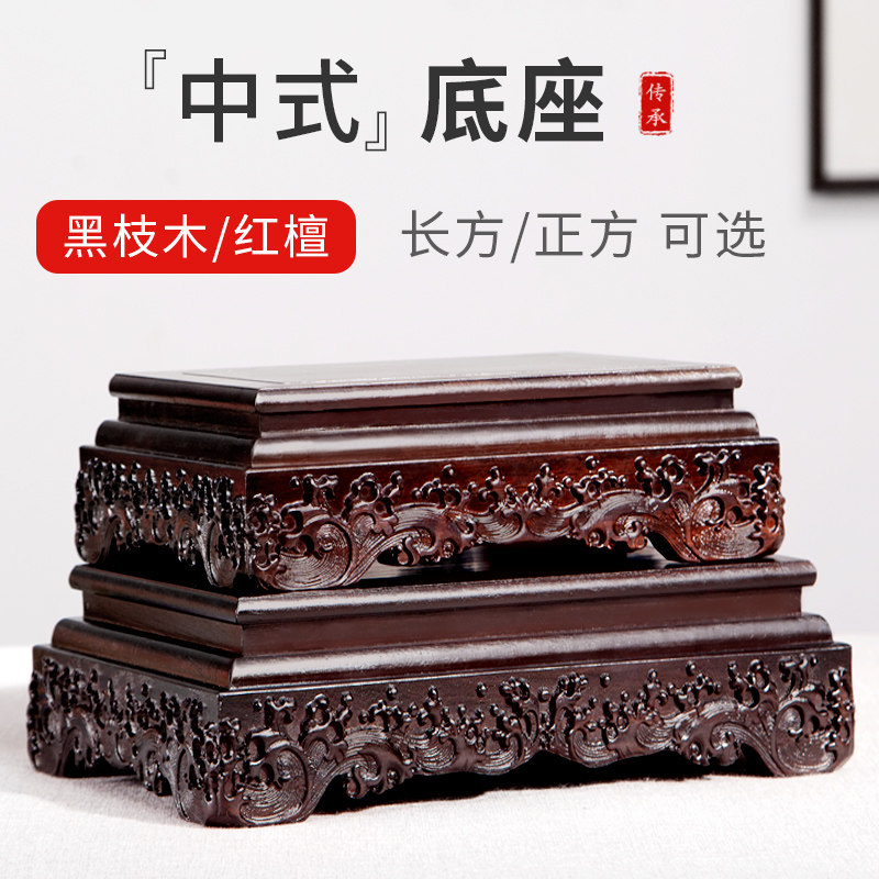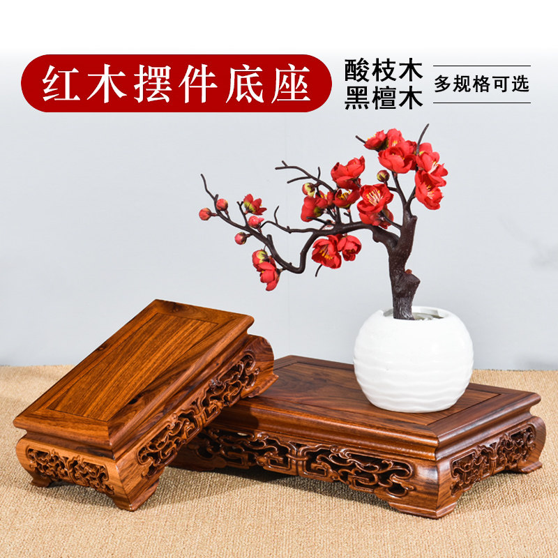 实木雕刻花瓶底座长方形佛像鱼缸石头底座花盆工艺品摆件底座红木
