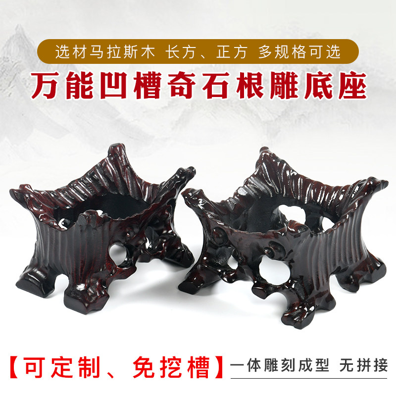 实木奇石底座带槽免挖槽黄河石鹅卵石泰山石头不规则凹槽摆件托架