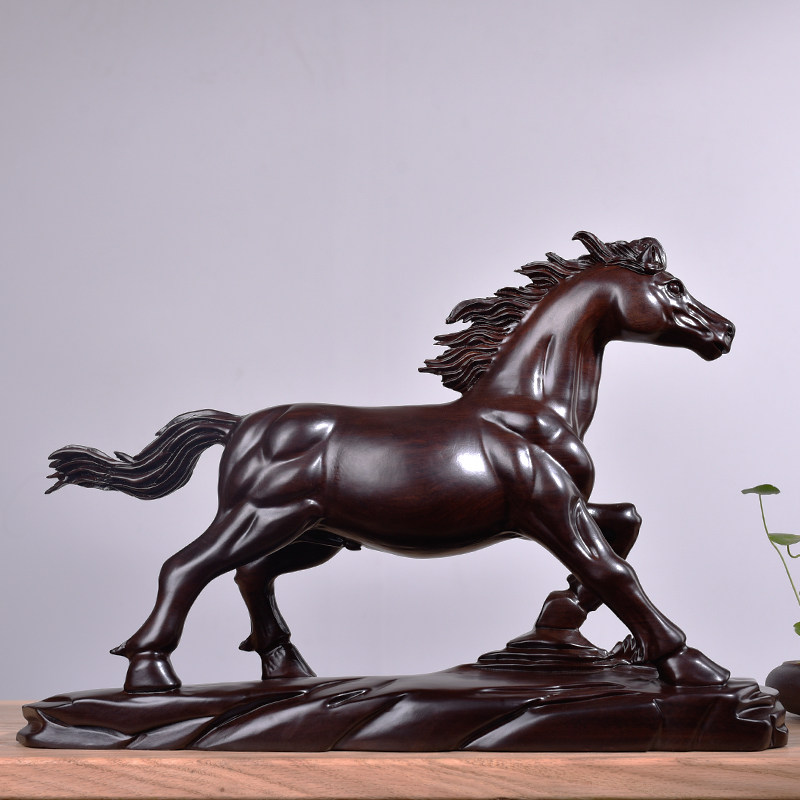 木雕马摆件马到成功黑檀实木雕刻马红木工艺送礼品家居客厅装饰