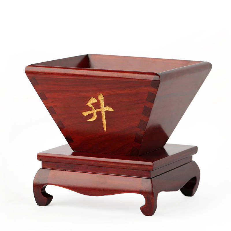 红木工艺品米斗木斗 日进斗金木雕摆件 实木质升禄带底座开业礼品