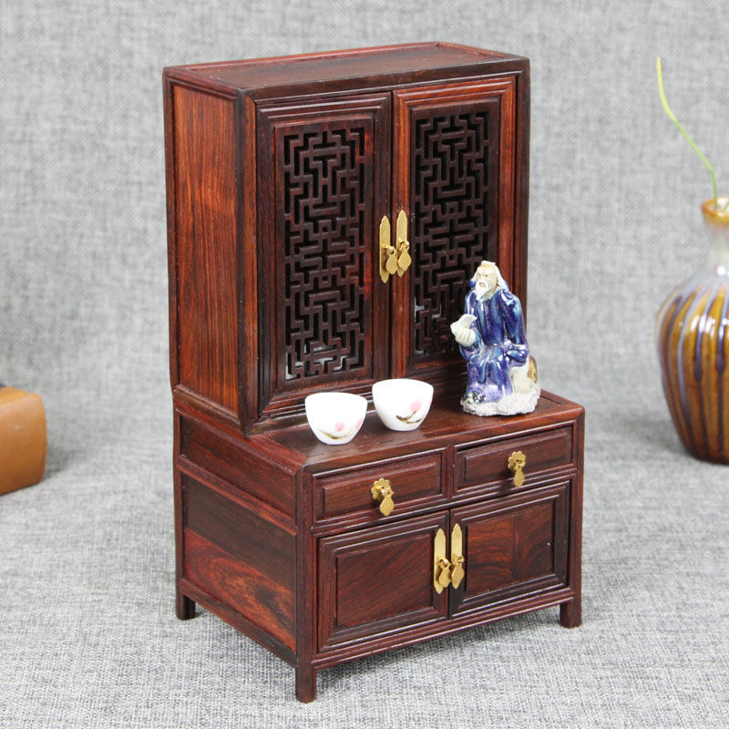 树林丰红木雕刻工艺品明清古典微型模型小家具摆件红酸枝微型床