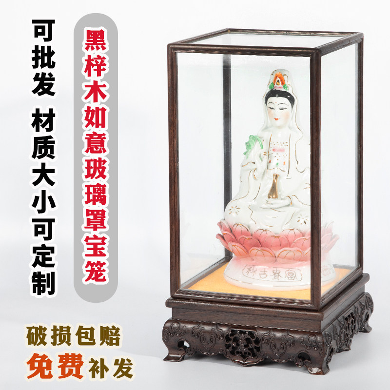 实木摆件观音佛像玻璃罩子红木宝笼工艺品花瓶底座防尘透明展示盒