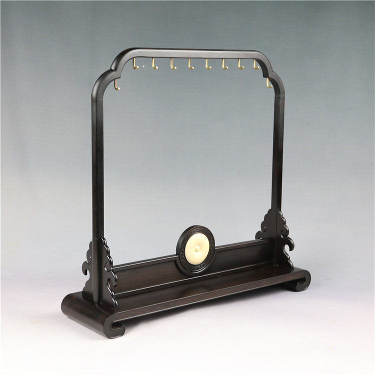 红酸枝黑檀刀剑架象牙底托 红木工艺品如意架牛角架 精品木雕底座