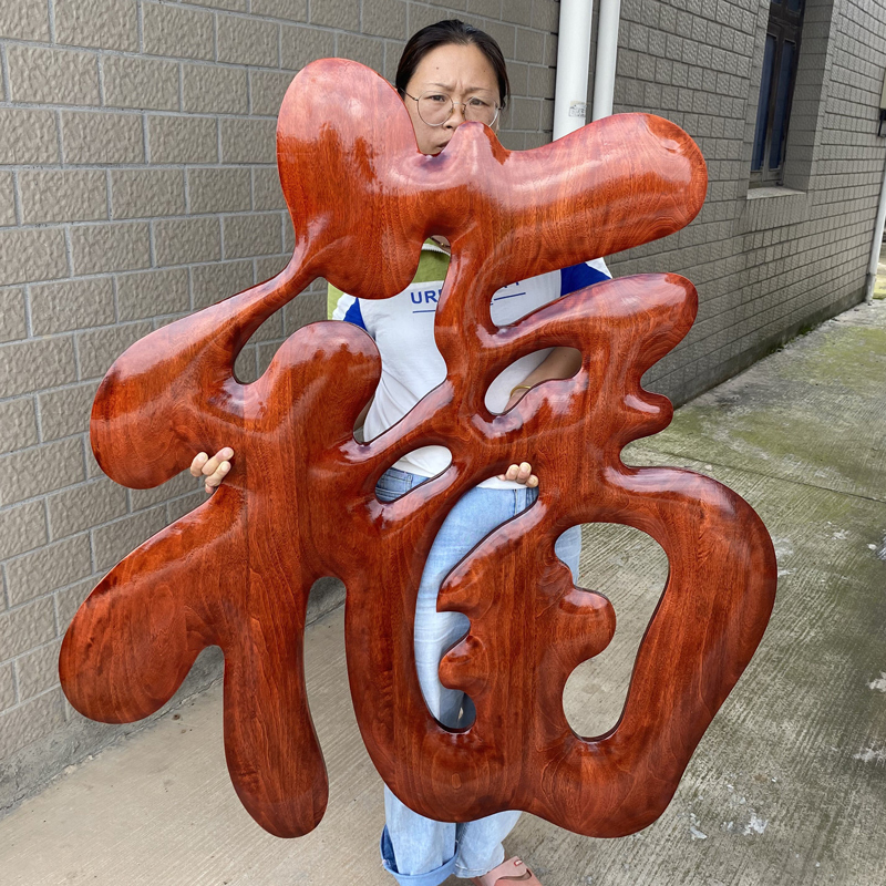 花梨木雕福字摆件中式客厅电视柜摆设创意简约家居装饰红木工艺品