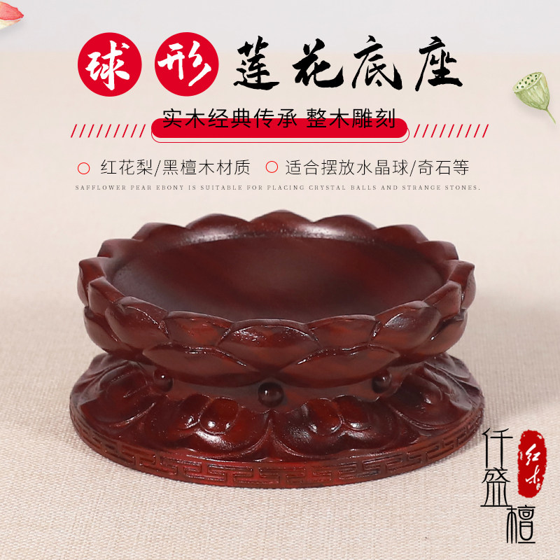 实木镂空雕花底座佛像底座黑檀花瓶盆观音莲花工艺品摆件红木托架