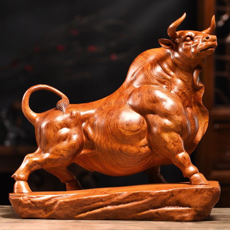 实木雕刻牛摆件生肖花梨木牛黑檀木雕家居客厅装饰开业红木工艺品
