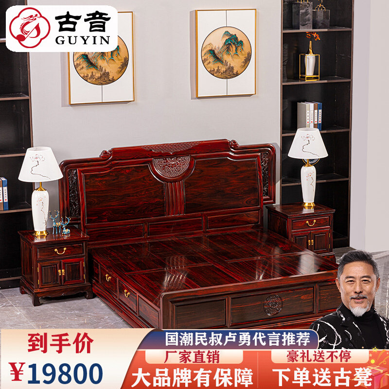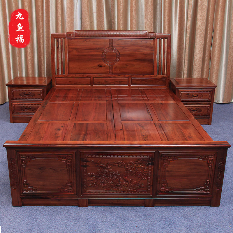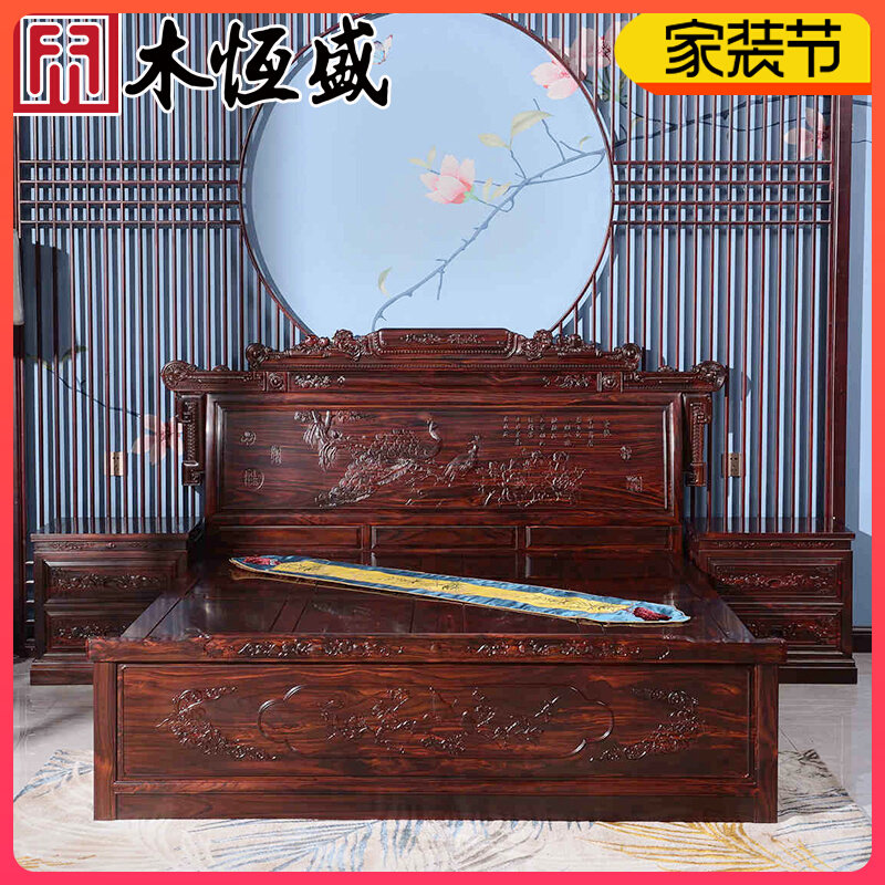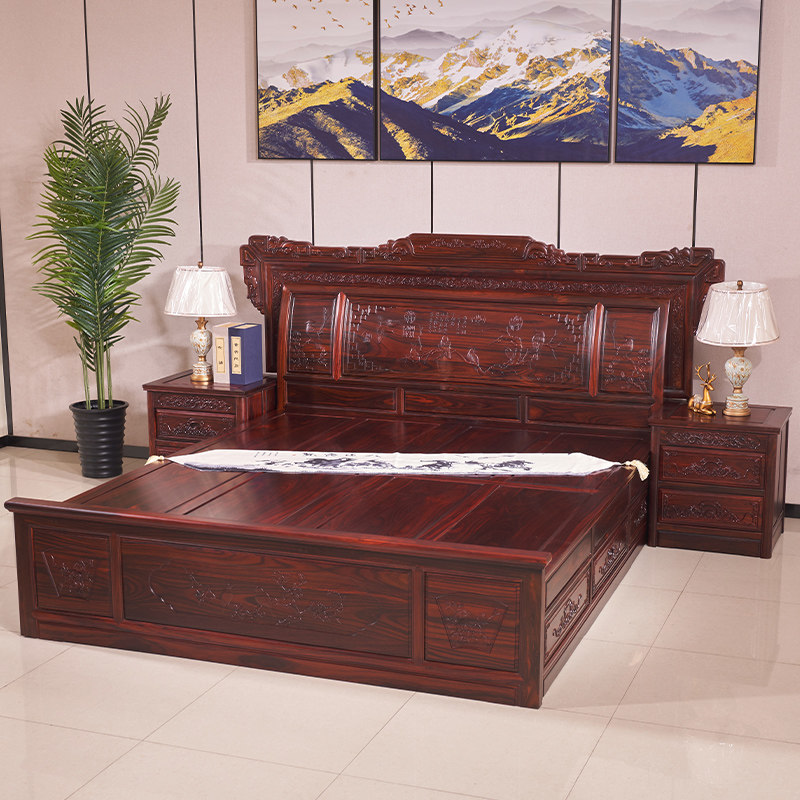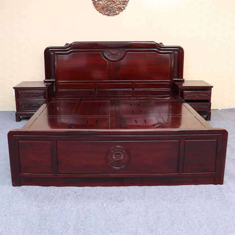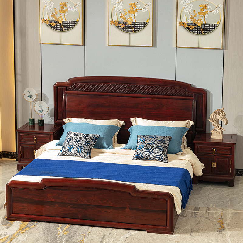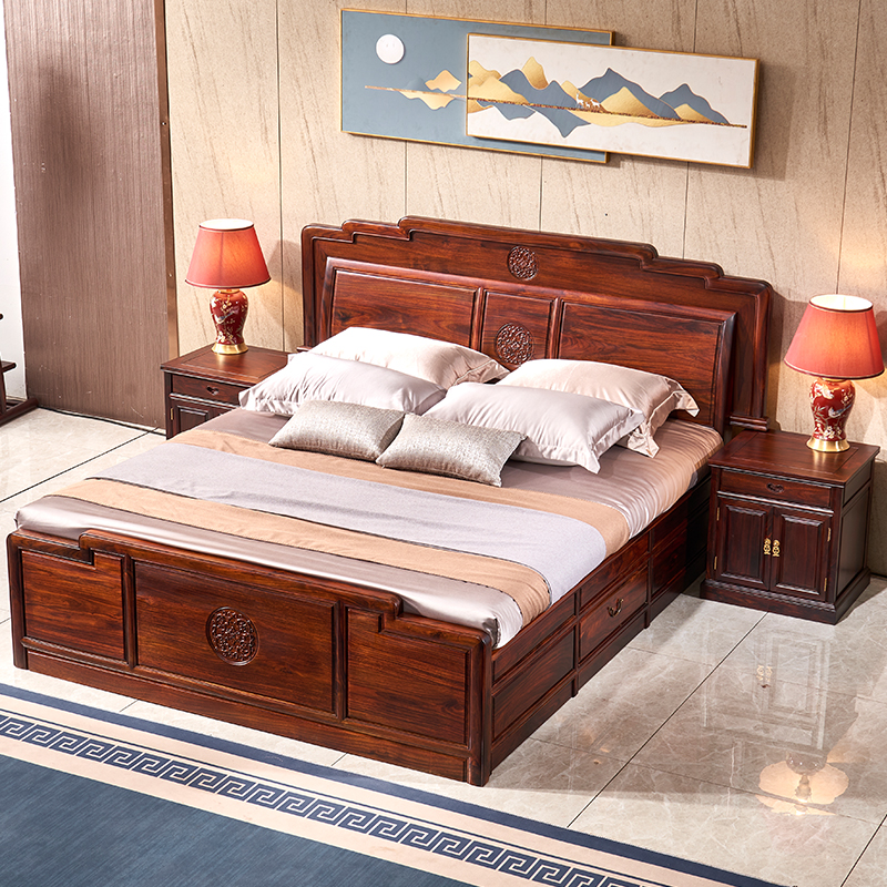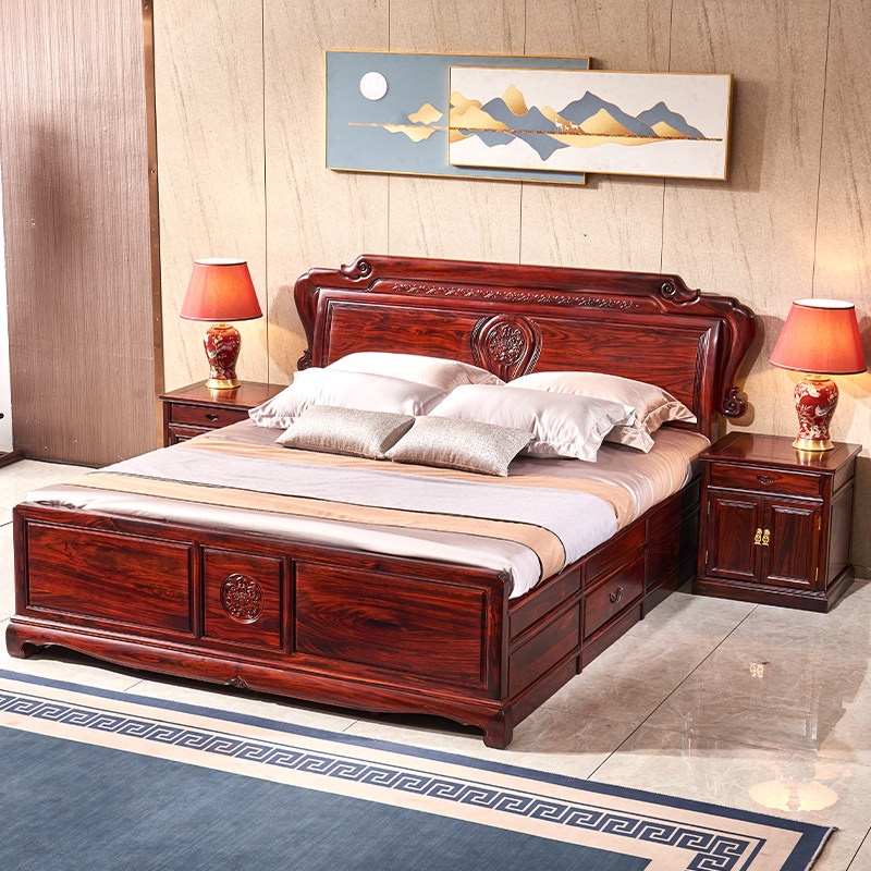 红木家具印尼黑酸枝明清古典阔叶黄檀家用卧室新婚财源大床三件套