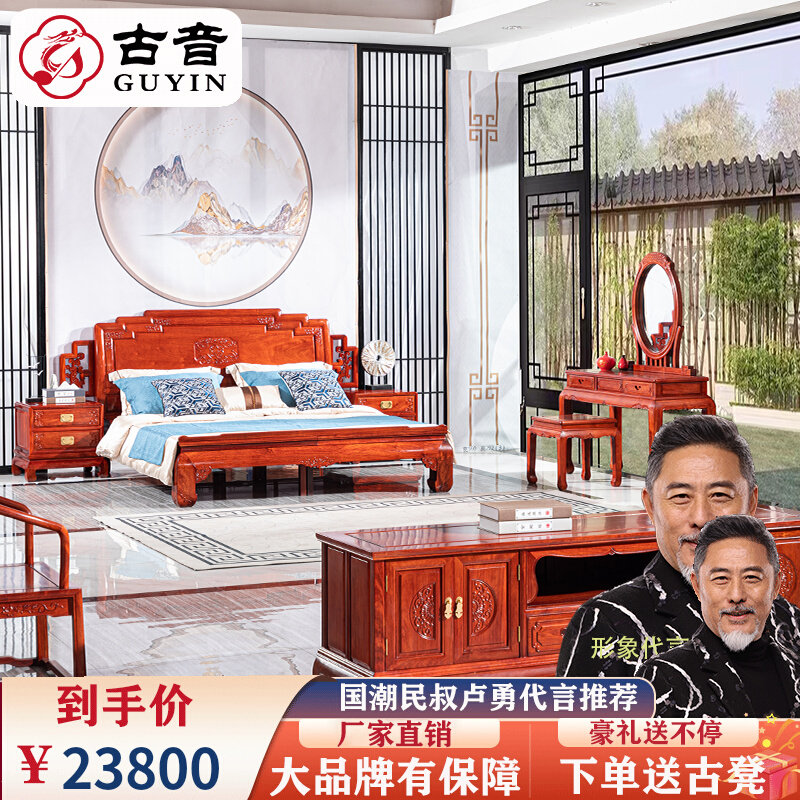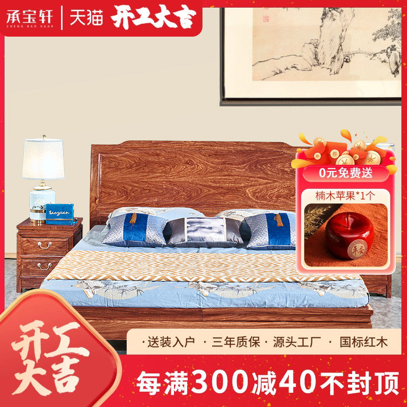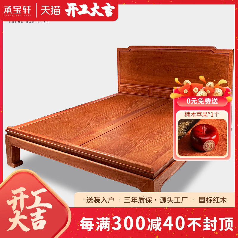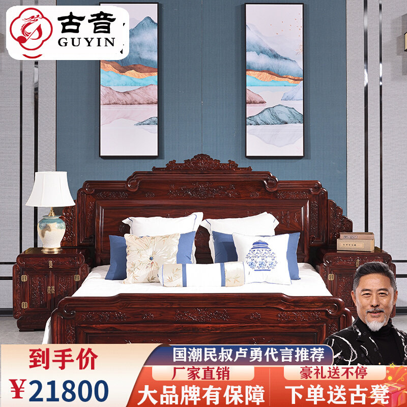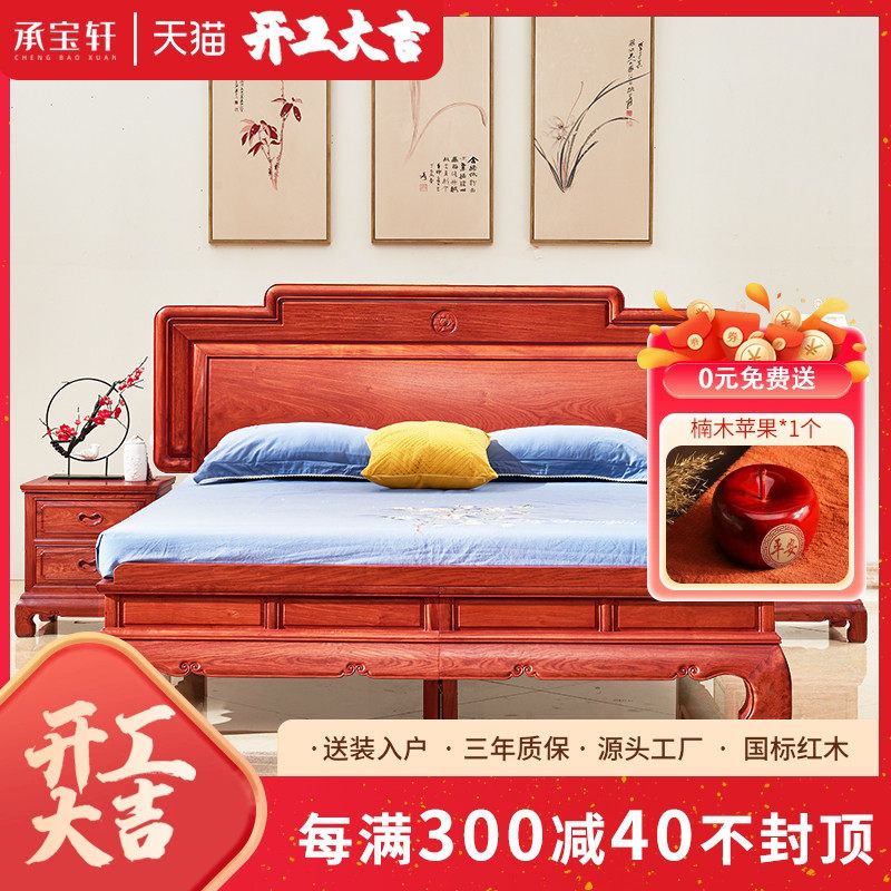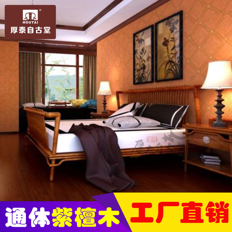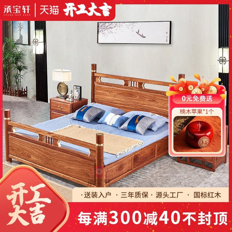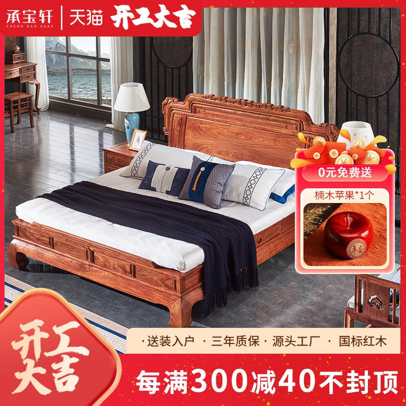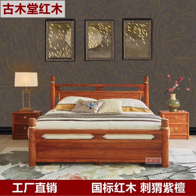 缅甸花梨大果紫檀中式红木大床双人床和谐床实木床榫卯结构中式床