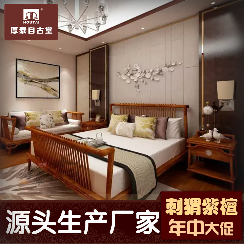 直销新中式花梨木刺猬紫檀双人床主卧家具K红木大床组合床头柜实