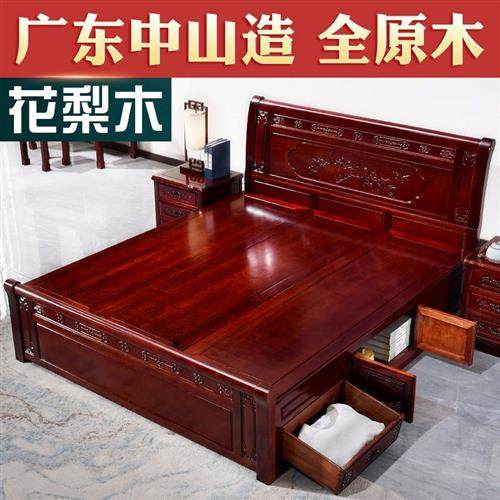 国标红木家具缅甸花梨木大床大果紫檀1.8米中式实木双人床结婚2床