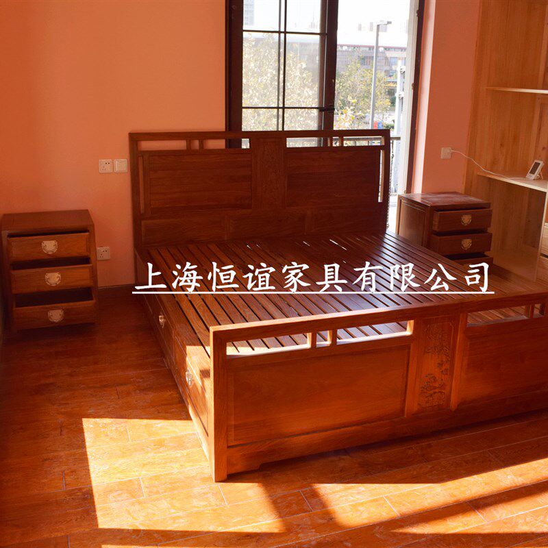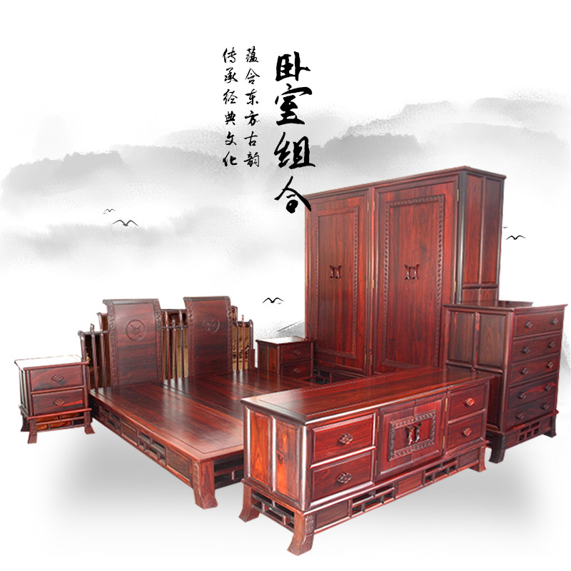 红木秦式卧室大床大衣柜电视柜床头柜 材料可做画画
