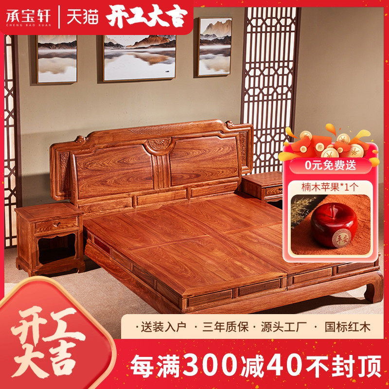 国标红木家具印尼黑酸枝红木大床明清古典阔叶黄檀卧室实木双人床
