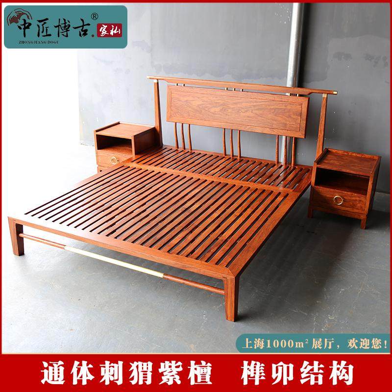 新中式红木大床刺猬紫檀双人床1.8米花梨木婚床现代简约全实木床