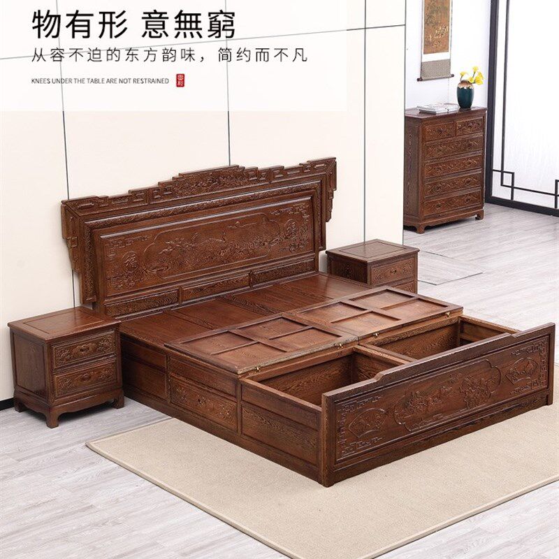 红木家具鸡翅木床新中式婚床双人床1.8米实木高箱大床厂家直销