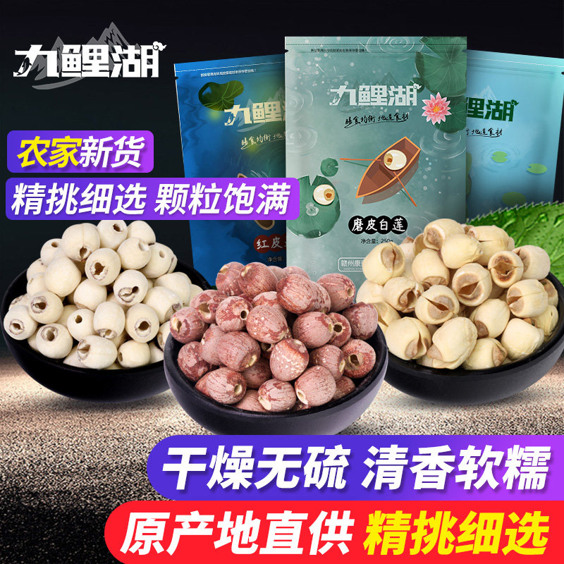 九鲤湖莲子通芯白莲磨皮莲子红莲子组合红皮莲子南北干货750g