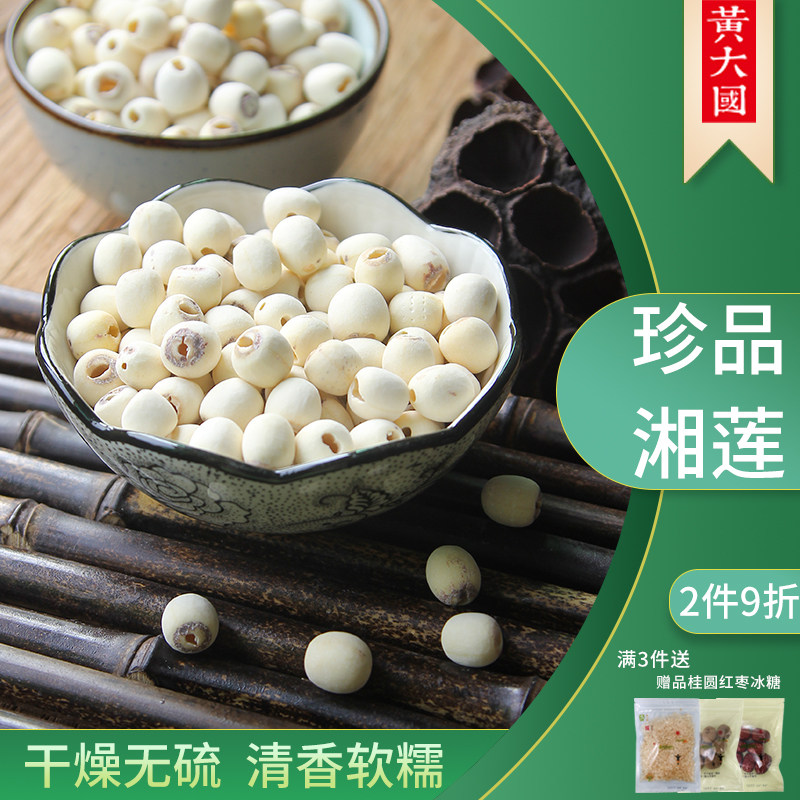 黄大国磨皮莲子特产250g去芯莲干货无心湘莲子粉糯百合桂圆红枣