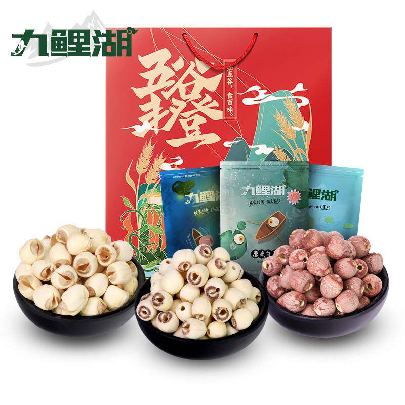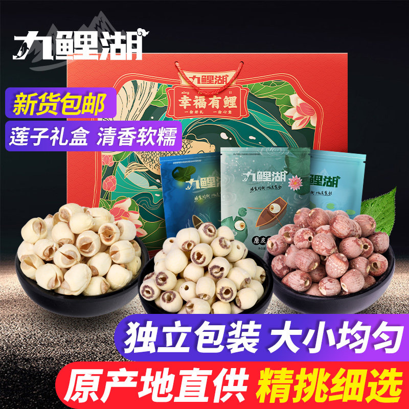 九鲤湖 莲子礼盒 1.5kg 过节送礼大礼包员工福利送礼通芯白莲红莲