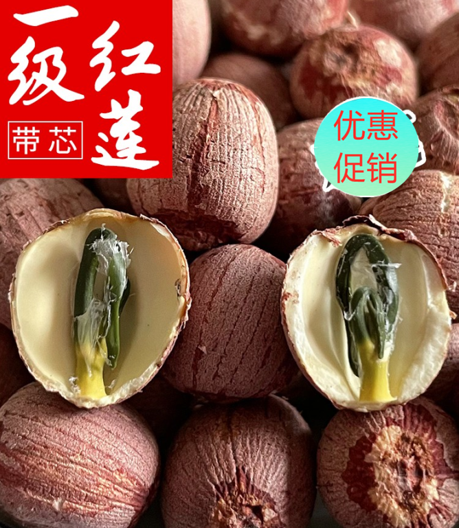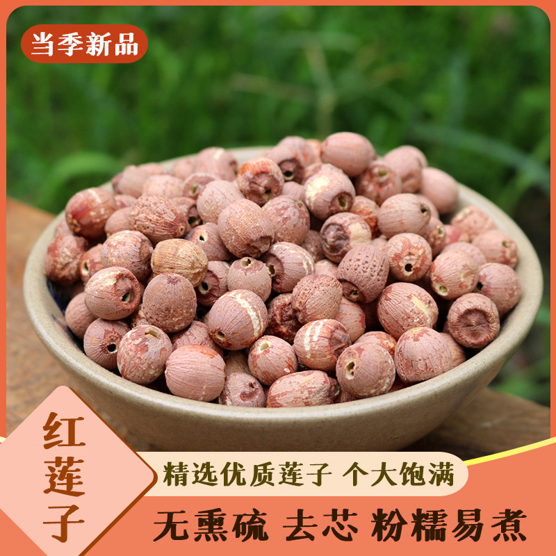 开边红莲子去芯新鲜红皮莲子无芯莲子干货无硫湖南湘潭赤莲子干