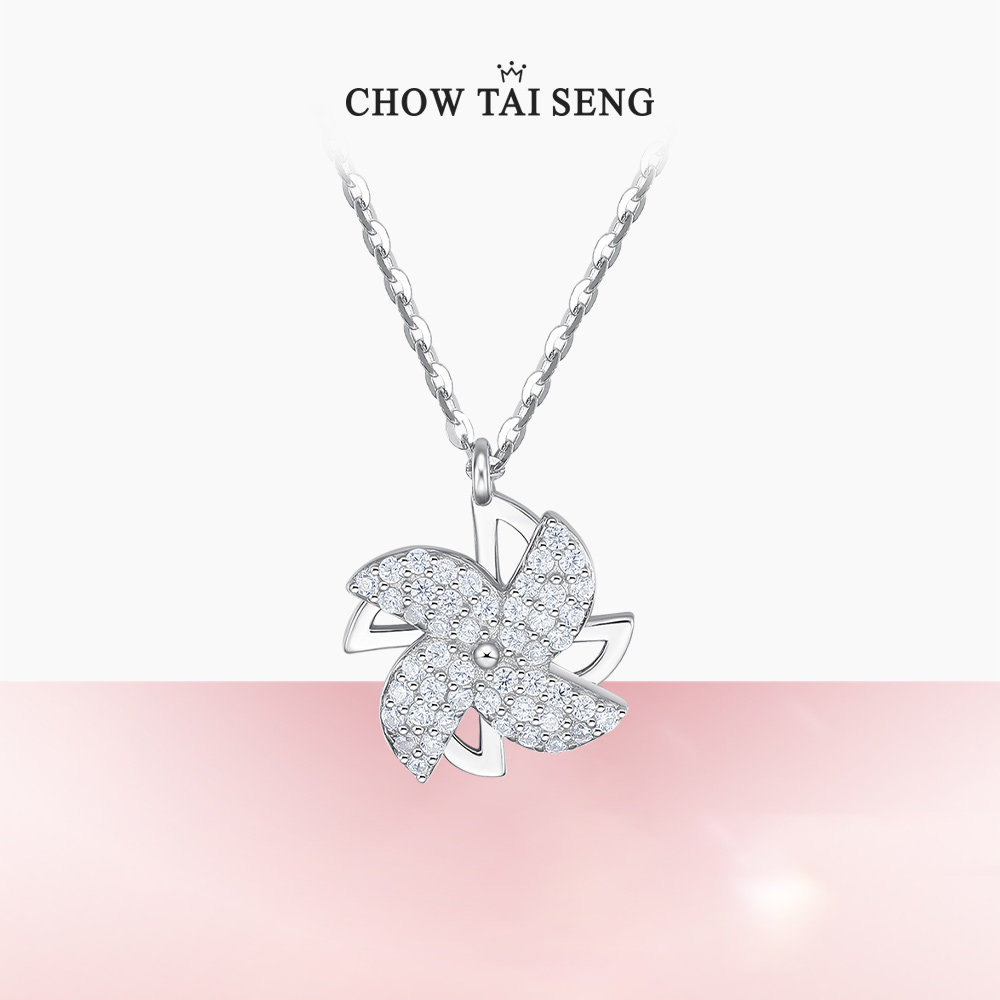 周大生旋转风车项链纯银女生轻奢小众设计高级生日礼物送女友闺蜜