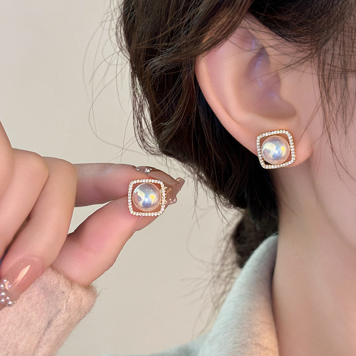 韩国镶钻人鱼姬珍珠耳钉女纯银轻奢高级感耳环2024年新款爆款耳饰