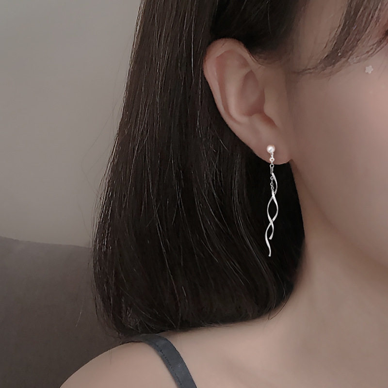 时尚925纯银流苏耳环s形波浪耳坠气质耳吊长款耳饰潮女神范通体银