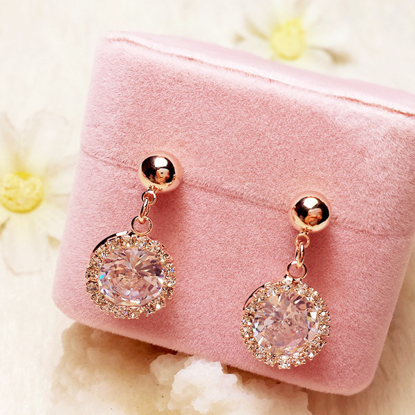 925纯银耳钉时尚大气超闪玫瑰金精致锆石吊坠带钻耳环耳坠耳饰女