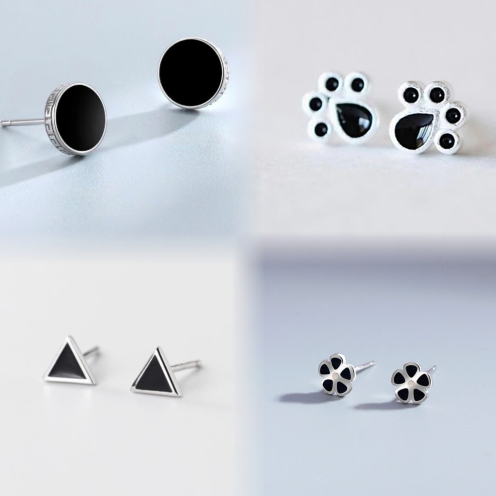 纯银养耳洞圆三角小花猫爪黑色系耳钉百搭个性复古冷淡可爱送饰品