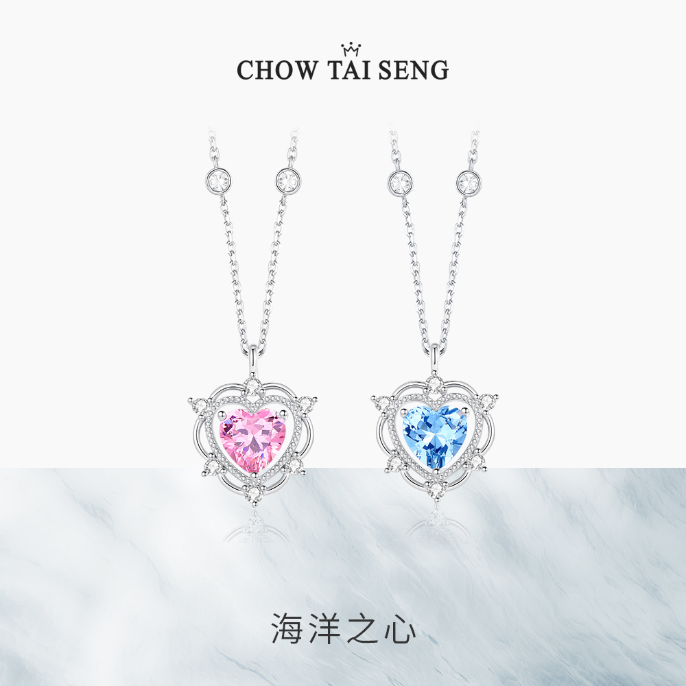 周大生四叶草项链纯银女多巴胺穿搭爱心轻奢小众设计感生日礼物