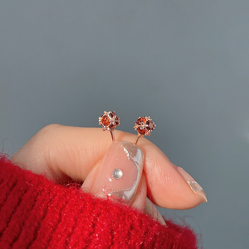 s925纯银红玉髓萌龙耳钉女生肖龙耳环萌系可爱本命年气质耳饰潮