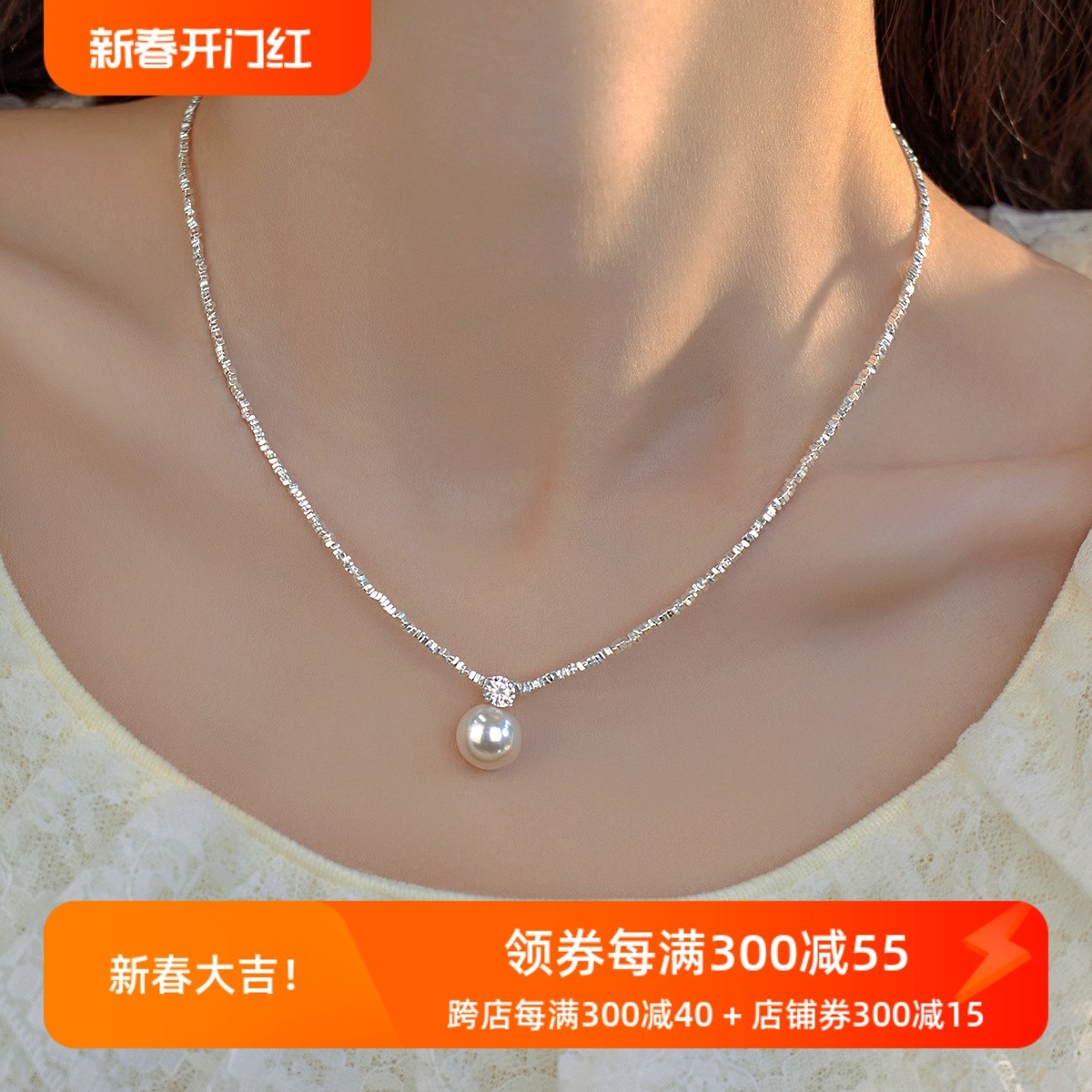 赛赛莉安戴妃款简约碎银子项链S925纯银珍珠小众设计高级感锁骨链