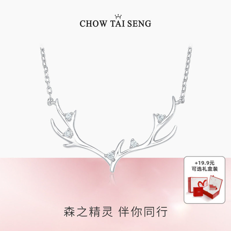 周大生一鹿有你项链纯银轻奢小众设计感锁骨链送女友生日礼物