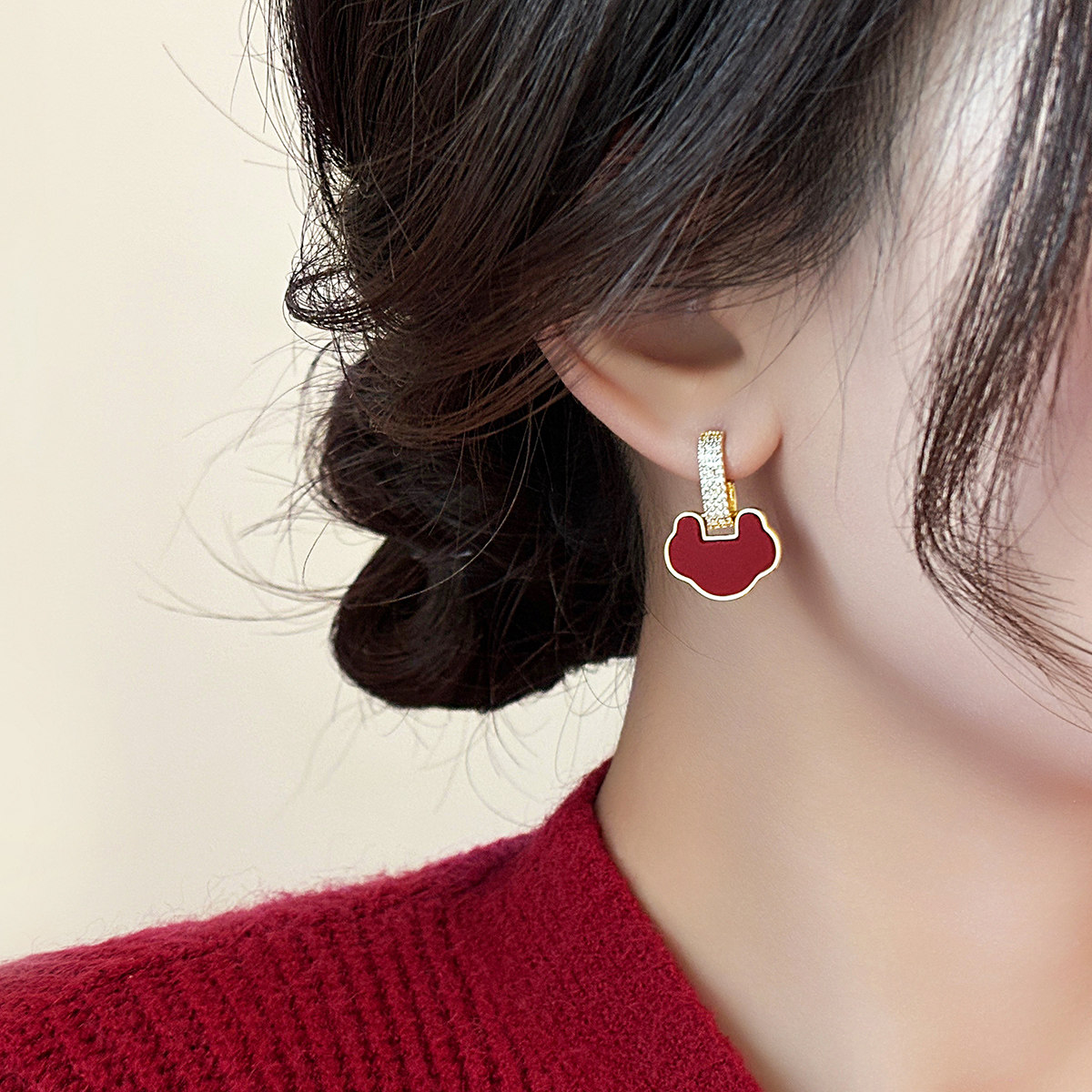 红色镶钻高级感时尚滴油耳饰S925纯银针提摇篮轻奢大气质耳扣耳环
