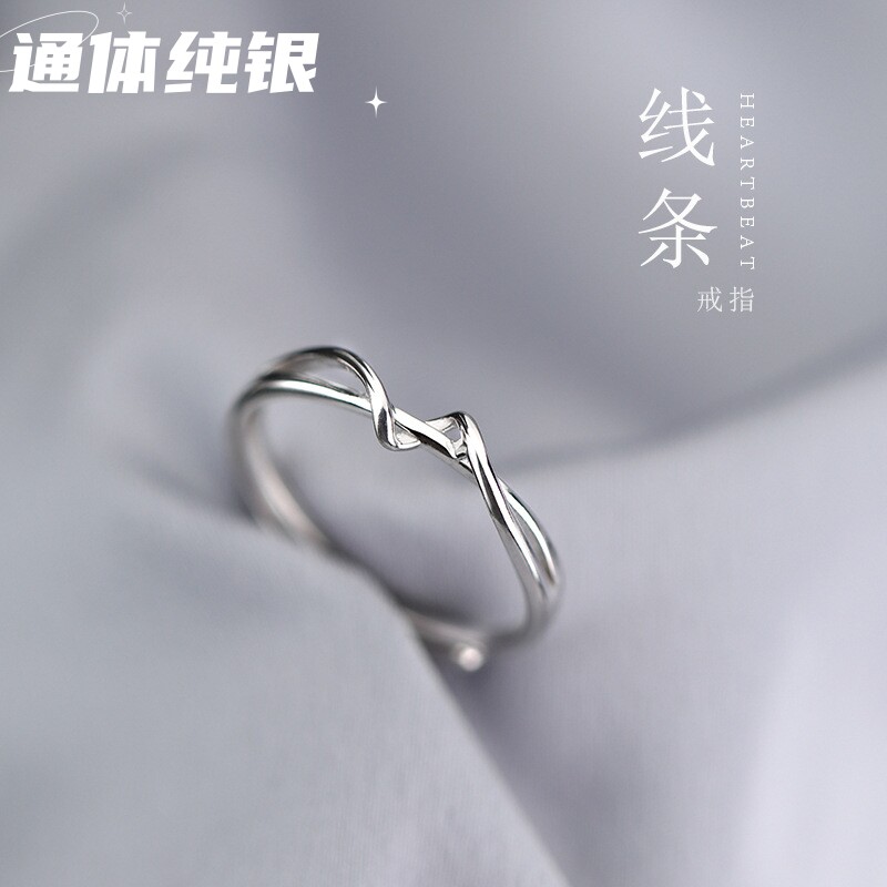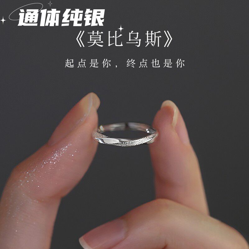 S925纯银莫比乌斯环素圈戒指女轻奢小众设计食指戒时尚开口戒尾戒