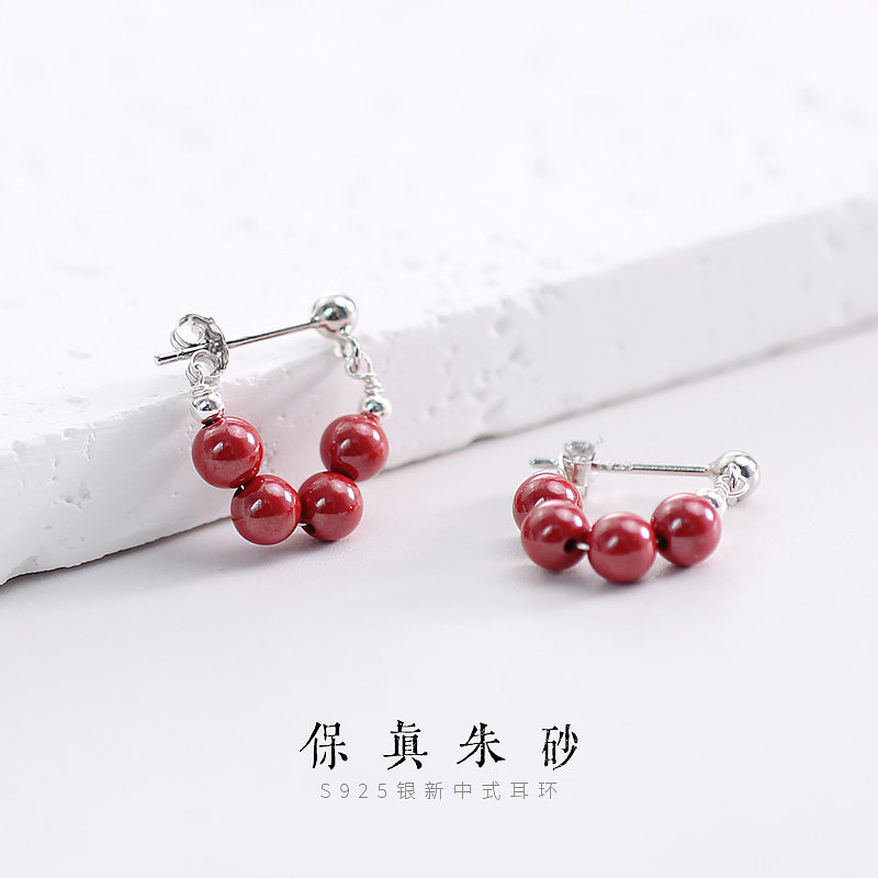 简约红色耳钉女纯银小众设计感高级耳饰耳坠2023年新款爆款耳环