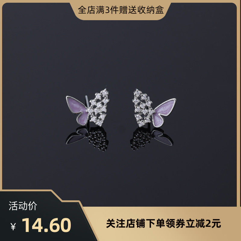 s925纯银紫色蝴蝶耳钉女2023新款爆款小众设计高级感轻奢气质名媛