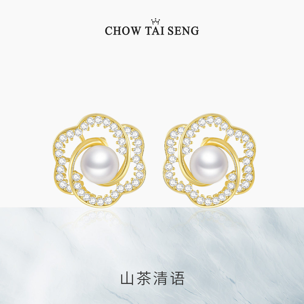 周大生山茶花纯银耳钉女轻奢小众高级设计感耳饰送女朋友生日礼物